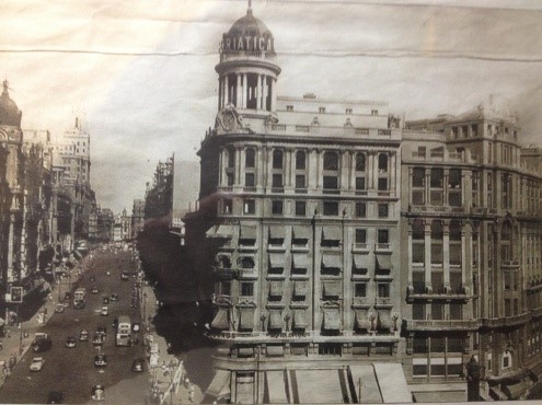 Fotografía actual y como era el Hotel Florida en la Plaza del Callao. Madrid