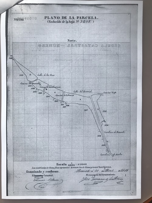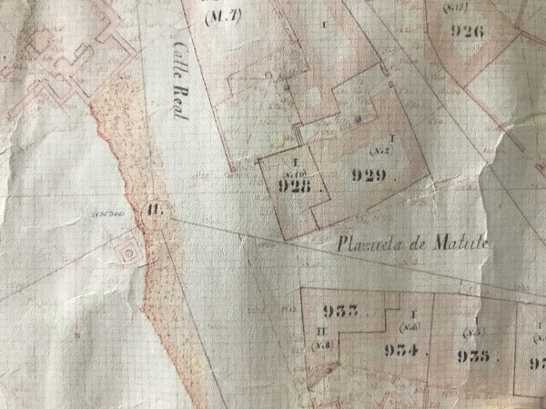 En algunas fincas se anota el precio en escudos, o en reales, o en pesetas. A su vez, podemos averiguar dónde estaban situadas con arreglo a las cédulas catastrales de 1866, o alrededor de ese año. Un caso interesante es el solar de la calle Real de las Angustias, indica que es “…un solar y ruinas de un edificio que fue hospital, procedente de los propios de dicho pueblo, sito en la calle Real de las Angustias”. También determinamos que de la plaza hacia el norte, es decir, donde estaba la Ermita de las Angustias, se conocía por calle Real de las Angustias y hacia el sur, donde está la Ermita de San Sebastián, calla Real de San Sebastián.