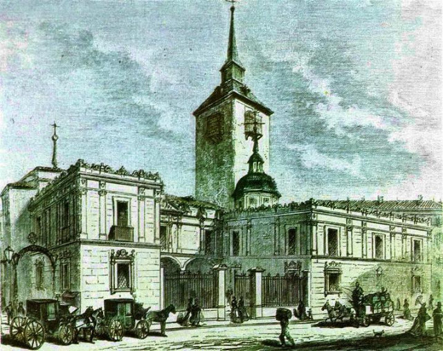 MADRID CALLE DEL ARENAL, IGLESIA DE SAN GINES HACIA 1860