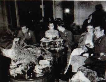 Oficiales del ejército todos condecorados con la medalla de la guerra civil, celebran la Nochevieja con sus novias. El Ritz acaba de ser redecorado.