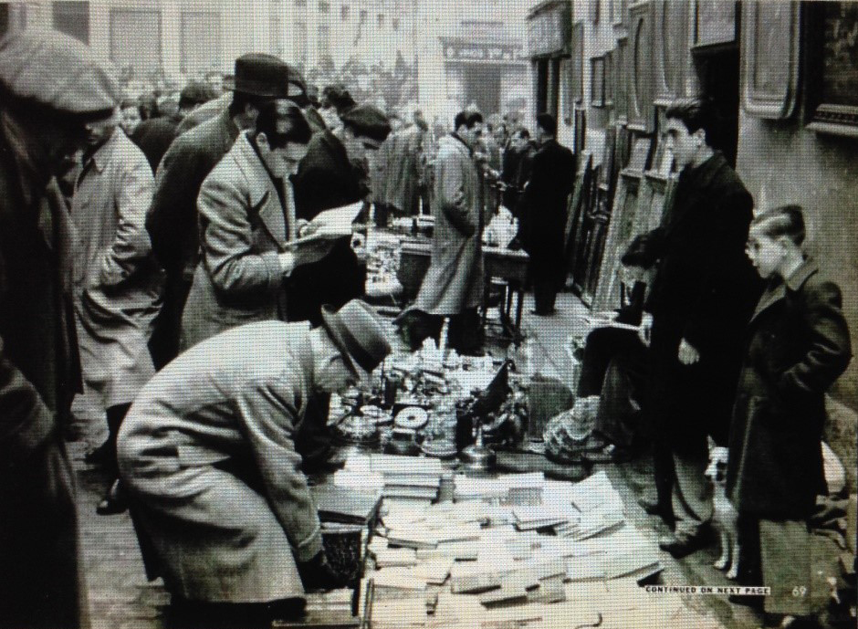 El mercado de baratijas de Madrid, El Rastro, es un gran negocio de libros, objetos de arte y pinturas, unas veces vendidos por hambrientas familias burguesas, o descubiertas en los sótanos de Madrid como botín de los republicanos y que no fueron reclamadas después por los propietarios originales.