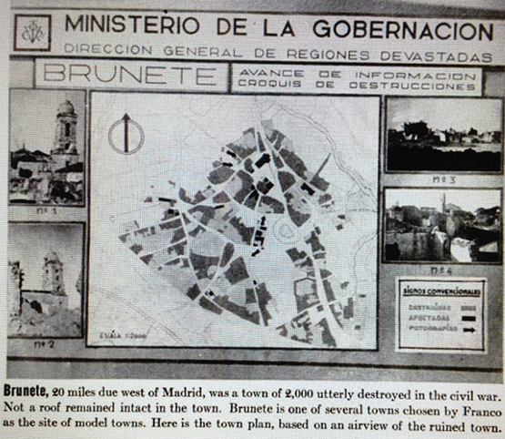 Ni un solo tejado permaneció intacto en la localidad. Brunete fue una de las varios pueblos elegidos por Franco como localización para una población modélica.