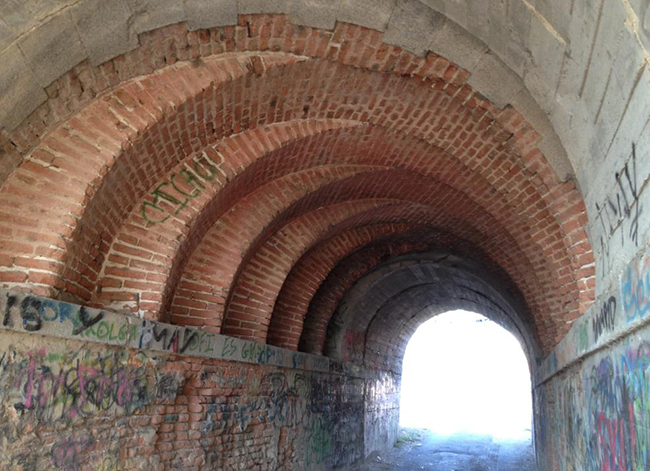 Para solventar arroyos o desniveles de no más de cinco metros construyeron lo que en Brunete llamábamos «alcantarillas grandes». Hoy queda una como testigo, justo a la salida del pueblo para acceder al camino de Navalcarnero, tal y como vemos con arcos desplazados para conseguir el propósito al no ser perpendicular a la carretera. Aunque hay que decir que está ampliada con encofrado de hormigón, mientras que otra, que estaba en el Lomo, en el arroyo Álamo Migón, desapareció al hacerse la autovía; y la tercera estaba en el Enfriador, en la Notaria, sin uso, ya que se desvió la carretera en la primera reforma de la posguerra.