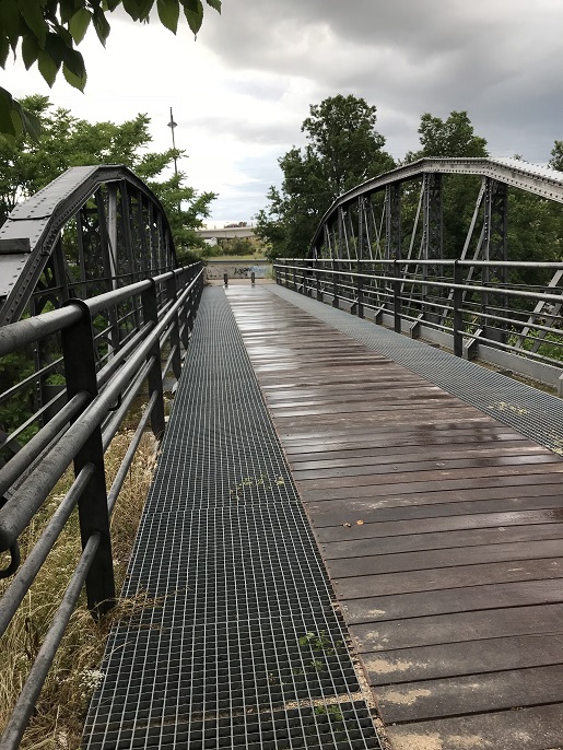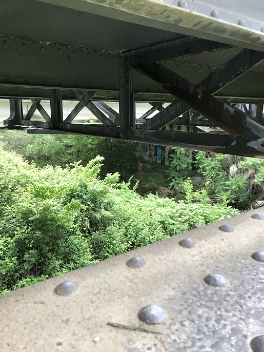 Esto nos informa de la fecha de ampliación y reconstrucción de un camino que ya se convirtió en carretera en 1860. La respuesta técnica para la construcción de puentes en la citada carretera se elabora de diversos modos. He detectado tres puentes en hierro remachado en caliente (exactamente como la Torre Eiffel): el de Villaviciosa, restaurado y cuidado como servicio peatonal; el de la Cepilla, abandonado a su suerte por quedarse fuera del nuevo itinerario; y el que hay sobe el río Perales, hacia el km 30, ya con poco uso en una vía de servicio que va en dirección a Villamantilla. Pero no hay ninguno sobre el Guadarrama.